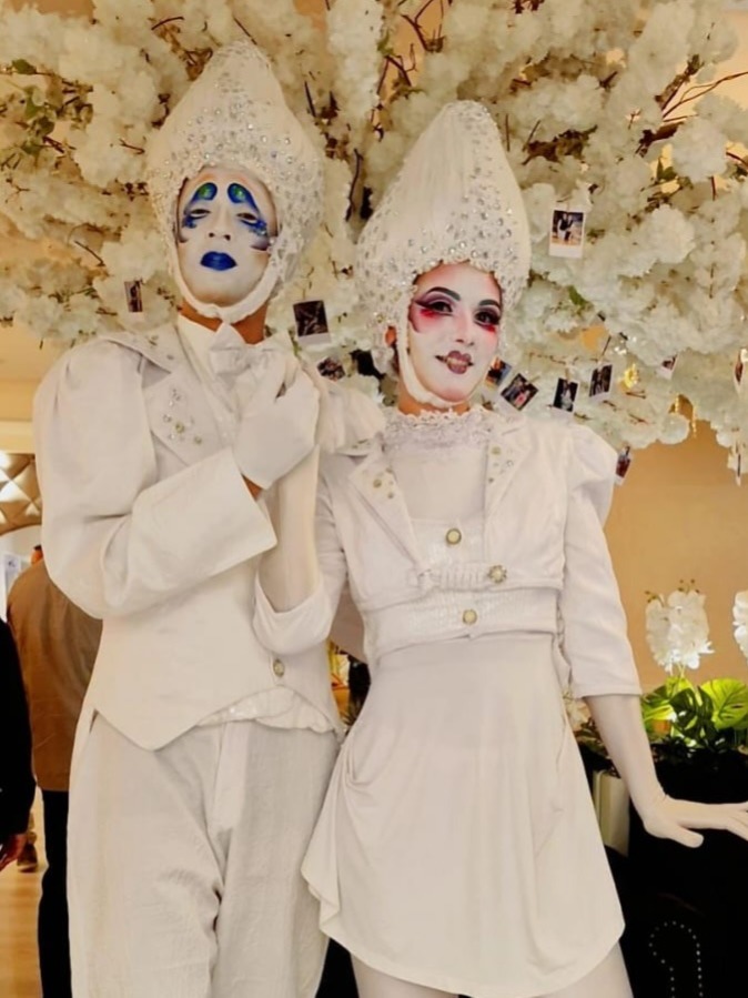 Transformamos celebrações em experiências inesquecíveis. Seja um casamento, aniversário ou festa exclusiva, nossas intervenções artísticas são desenhadas para encantar seus convidados e elevar a estética do seu evento a um nível extraordinário. Onde o brilho do figurino encontra o sorriso de quem você ama.